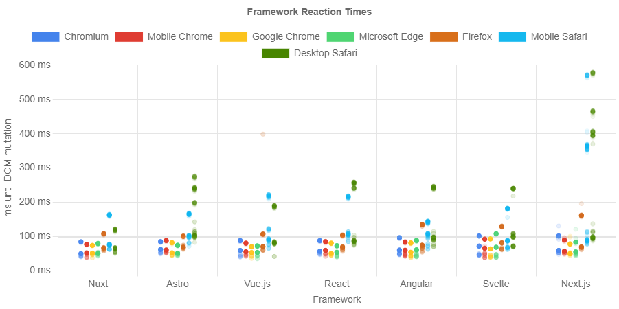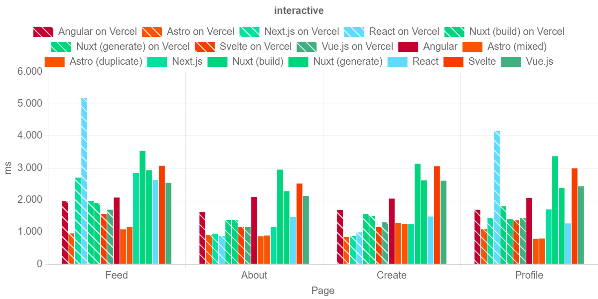 | ms | Nuxt | Angular | Vue.js | React | Astro | Svelte | Next.js | Ø |