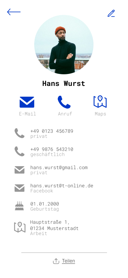 - Kontakt-Detailansicht